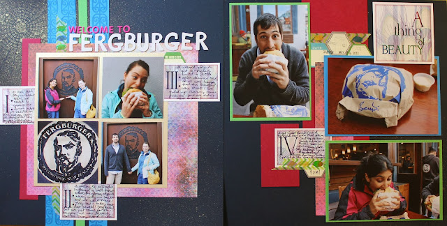 I have a lot of ideas of what I want to get accomplished in 2014, crafting-wise, and one of them is to get all of my old pictures into albums. I'm a little overwhelmed with what I have to tackle on these, so I think I'm going to slip most of these pictures into pocket page protectors like these. I was able to use many elements from this month's kit to create 4x6 and 3x4 cards that I then used on these both on a traditional 12x12 layout and in the pocket page protector.